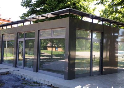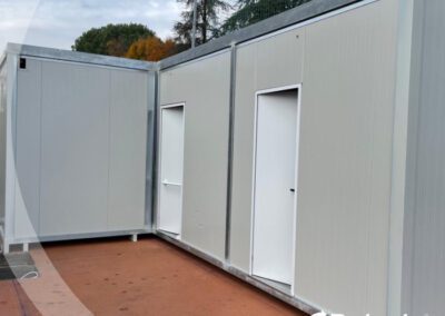 I pannelli isolanti di parete e di copertura garantiscono la coibentazione degli ambienti, corredati di serramenti standard e su misura, con pavimentazione in legno con strato di PVC o a scelta altre tipologie. Vengono dotati di impianto elettrico a norma e di impianto idraulico se richiesto.